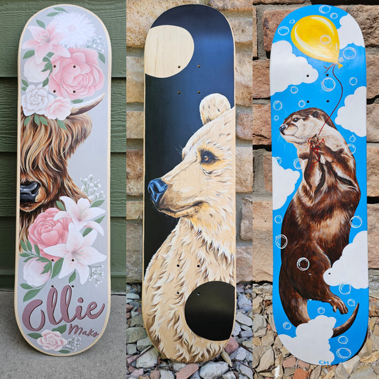 Custom pet portraits, wildlife paintings and various products like fly boxes, skateboards, furniture ect.